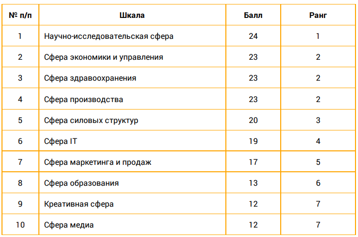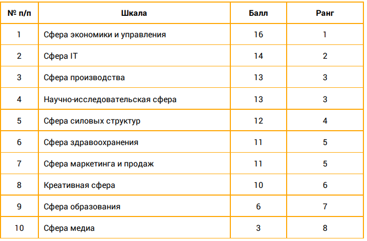 Ценностная сфера характеризуется выраженной направленностью на сферу экономики и управления.